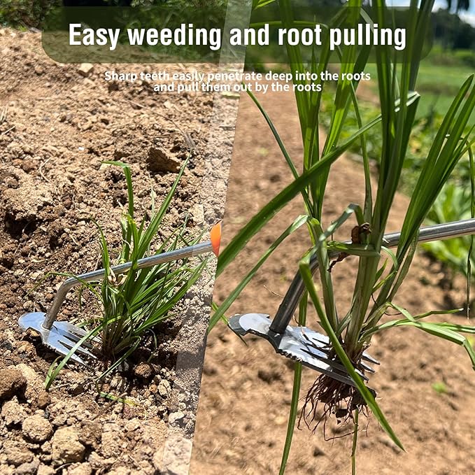 - Garden Weed Pulling Tool - 4-Tine Weeder.With this multifunctional hand weeder, all kinds of weeds can be easily removed, and a variety of horticultural planting, digging, and cuttings. The 4 tines can easily loosen the soil to the bottom of the grass, plant vegetables, fruits and flower pots. At the same time, you do not have to squat or get your hands dirty, just let the weed puller help with the daily basic home gardening work