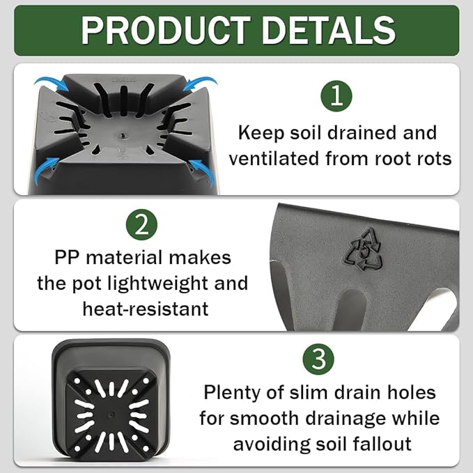 - Durable Nursery Pots: These small potsare made of flexible PP material, this make them lightweight and heat-resistant, less likely to crack or break