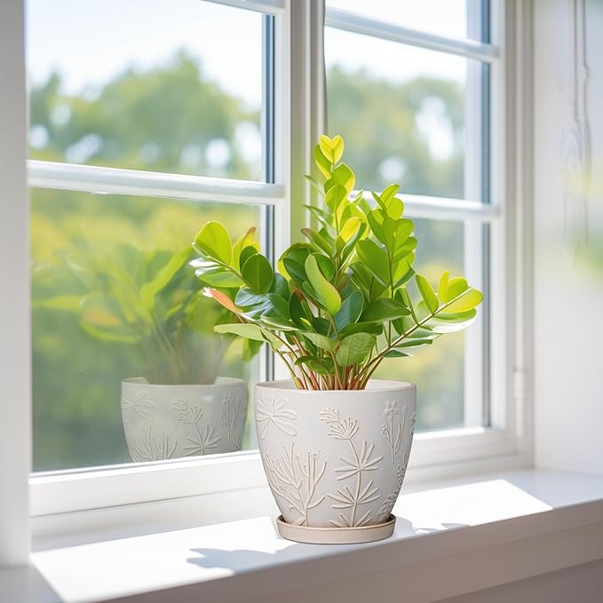 • Materials: This 6 inch plant pot is made of high-temperature ceramic material, durble and solid. This ceramic plant pot can be used indoors and outdoors for a long time, without worrying about fading, warping or rusting