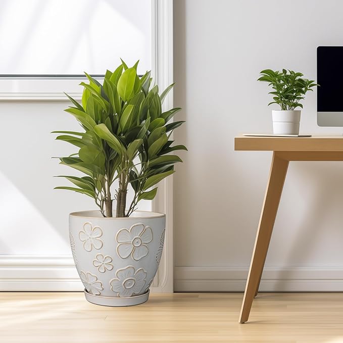 - Stylish Appearance: Our ceramic planter has a white main colour and a beautiful embossed petal pattern on the surface, elegant appearance making it ideal for home decor, garden decor and office decor