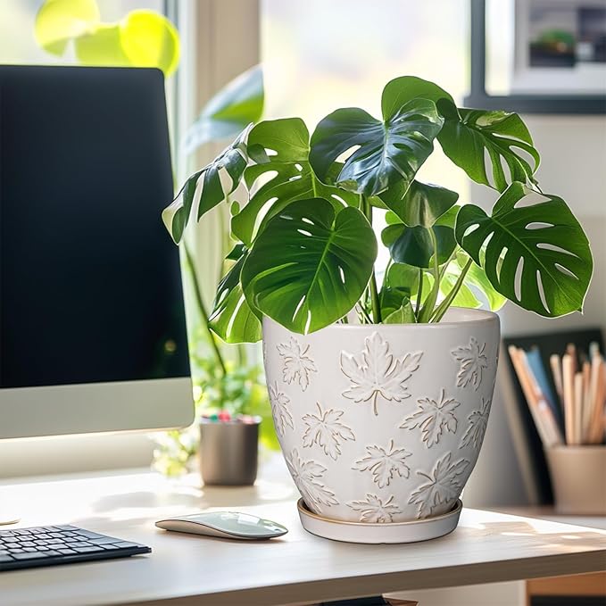 - Stylish Appearance: Our ceramic planter has a white main colour, a beautiful embossed maple leaves pattern on the surface, elegant appearance making it ideal for home decor, garden decor and office decor