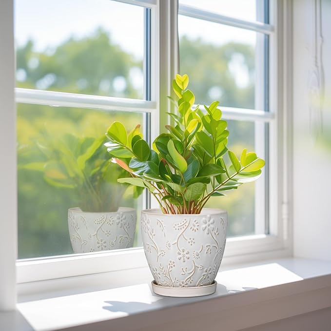 - Stylish Appearance: Our ceramic plant pot has a white main colour, a beautiful embossed petal and leaf pattern on the surface, elegant appearance making it ideal for home decor, garden decor and office decor