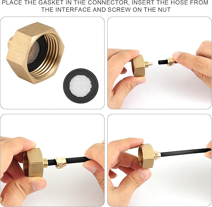 - Easy to Use: Place the gasket in the connector, insert the hose from the interface and screw on the nut.