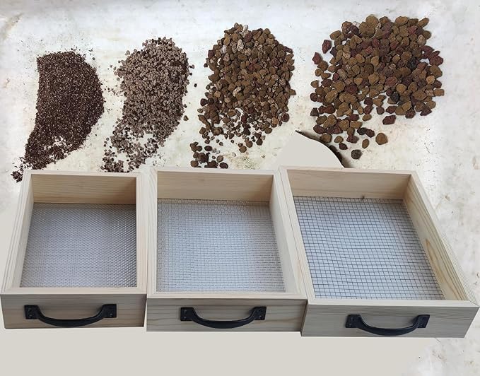 Wood Soil Sifter Metal Dirt Sifter Purpose Garden Sifter Rock Sifter Compost Sifter for Gardening (3 Pcs Sifter)