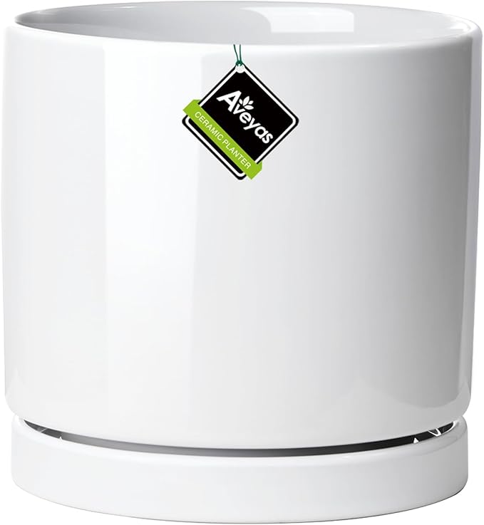 Aveyas 6 inch Ceramic Plant Pot with Drainage Hole and Saucer - Suitable for Indoor and Outdoor Use, Modern Planters for House Garden Orchid Flower Snake Monstera Plants (6", Glossy White)
