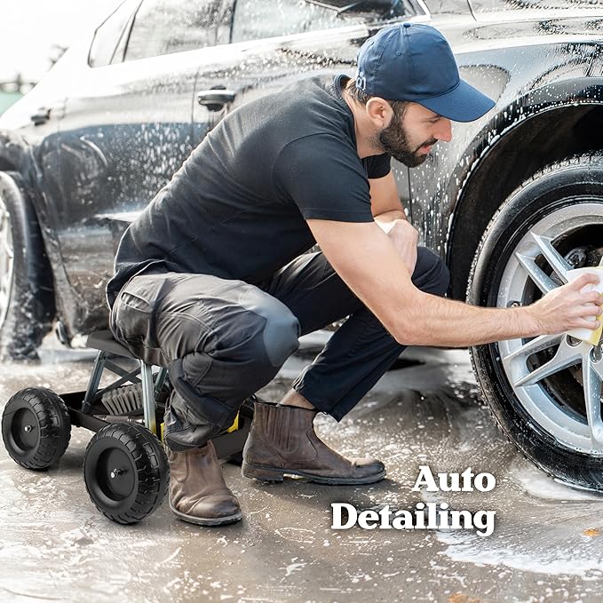 - GARDEN STOOL - This rolling gardening scooter is ideal for alleviating back and knee pain when planting or weeding. You can also use this handy stool with wheels for other tasks around the home like painting, cleaning, car repair, and more.