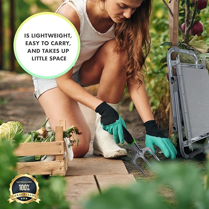 - 🚪 Foldable and Space-Saving: Take it wherever you go! This kneeler is lightweight and easy to carry. Its foldable design allows you to store it in any corner without taking up space, perfect for gardens, balconies, or any green area. When you're done, just fold it up and store it with total convenience.