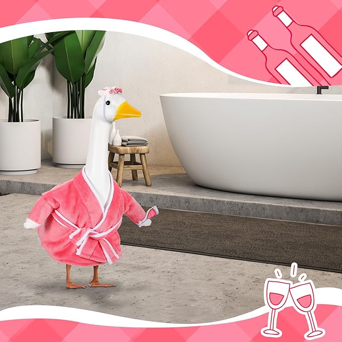 - Lady Goose Design: goose clothes for cement goose come in a vibrant pink color coupled with an endearing lady design; The pink and white colors add a different appeal to your lawn, ensuring it stands out