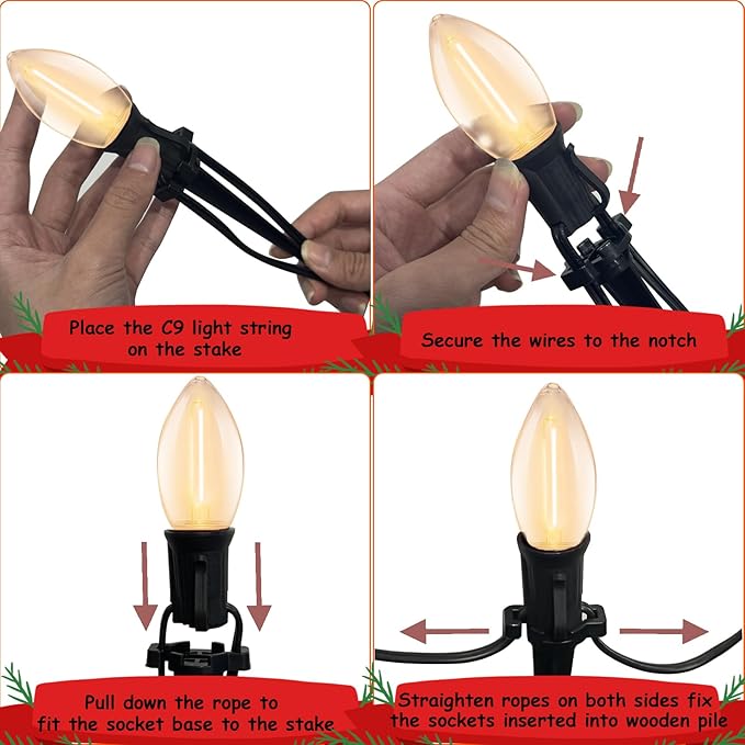 - Weatherproof Christmas Pathway Lights: C9 LED Christmas yard decoration lights is made of 25 plastic clear bulbs and 25 plastic stakes, IP44 Waterproof, durable and long-lasting for Christmas outside decorations, can withstand all kind of weather, perfect for Christmas pathway, garden, courtyard, sidewalk decor.