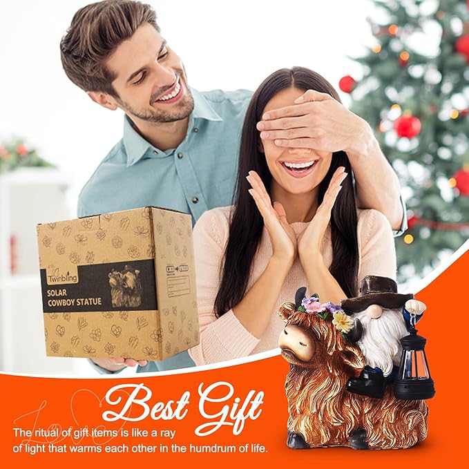 - 【Perfect Gift for Garden Enthusiasts】This Highland Cow Gnome Statue is an ideal gift for garden lovers, fairy tale lovers, and anyone who loves unique outdoor décor. Its whimsical design and practical functionality combine to create a thoughtful and memorable gift for birthdays, holidays or special occasions.