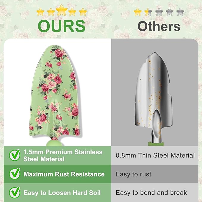 - Durable & Rust-Proof Tools: Crafted with high-hardness stainless steel, each tool is built to withstand tough gardening tasks without bending or breaking. Tools are rust-resistant, sharp, and tough, ensuring they last through many seasons of gardening.