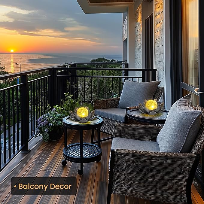 - 🌞【Auto ON/OFF & Energy Efficiency】🌞100% solar-powered Lotus solar lights, save you time and electricity bills. This solar table light will charge automatically during the day, and it will light up automatically (warm white light )at night to illuminate your garden. (Turn the switch to the ON position before use.)