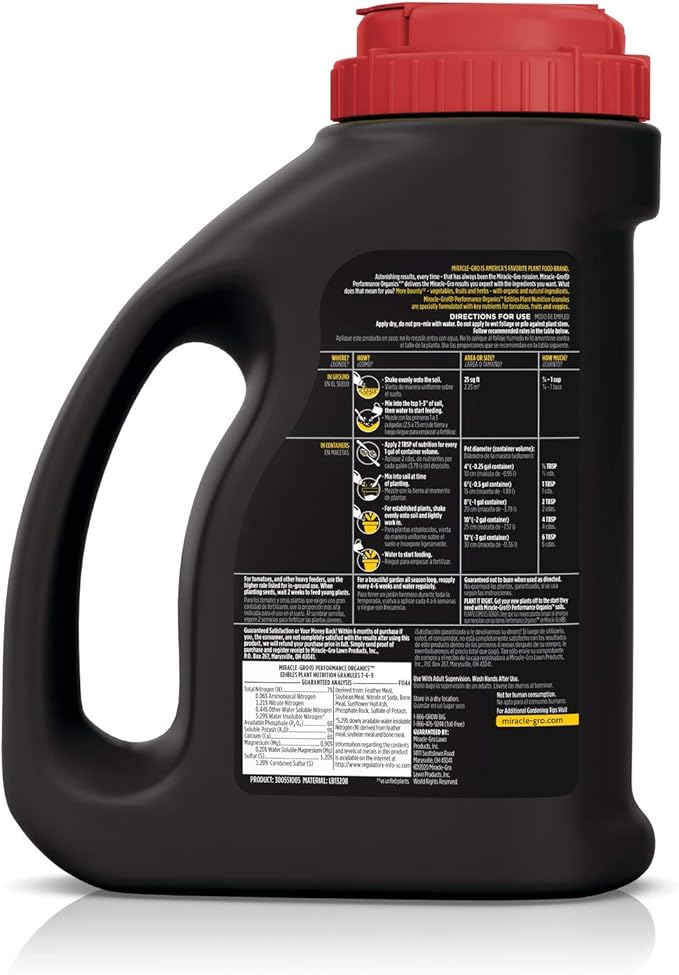 - Use Miracle-Gro Performance Organics Edibles Plant Nutrition Granules to feed tomatoes, vegetables, herbs, and fruits