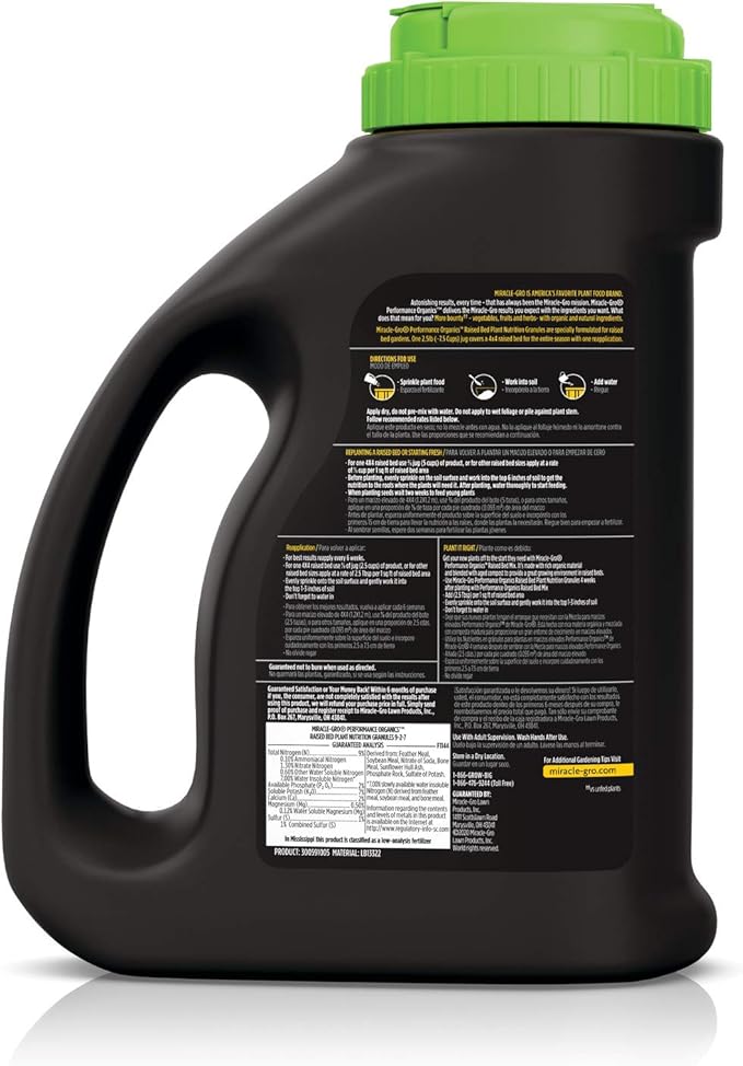 Miracle-Gro Performance Organics Raised Bed Plant Nutrition Granules - Plant Food with Natural & Organic Ingredients, for Vegetables, Fruits, Herbs and Flowers in Raised Beds, 2.5 lbs. (Pack of 2)