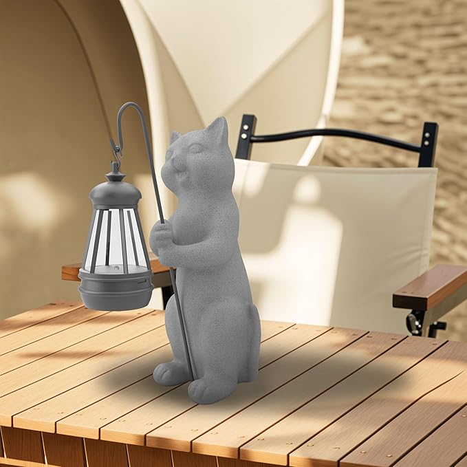 Solar Cat Garden Statue 10 Inch Porch Patio Decor for Outside Yard Decoration Outdoor Unique Housewarming Gardening Birthday Gifts for Cat Lovers Women Grandma