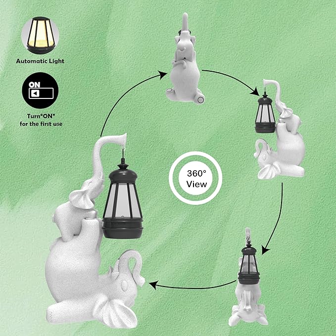 Solar Garden Statue 10 Inch Elephant Decor for Outside Yard Decoration Outdoor Unique Housewarming Gardening Birthday Gifts for Women Grandma