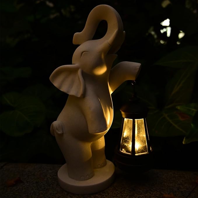 Solar Garden Statue 10 Inch Elephant Decor for Outside Yard Decoration Outdoor Unique Housewarming Gardening Birthday Gifts for Women Grandma