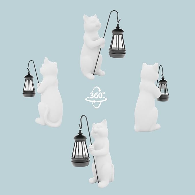 Solar Cat Garden Statue 10 Inch Porch Patio Decor for Outside Yard Decoration Outdoor Unique Housewarming Gardening Birthday Gifts for Cat Lovers Women Grandma