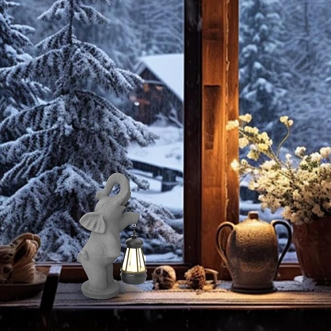 Solar Garden Statue 10 Inch Elephant Decor for Outside Yard Decoration Outdoor Unique Housewarming Gardening Birthday Gifts for Women Grandma
