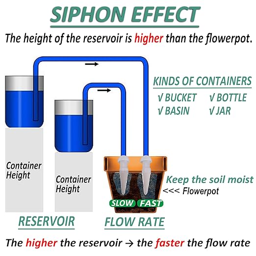 - 【How does it work?】This is a siphon effect. When you use the self watering plant insert, make sure the water level is higher than the soil. The water at a higher level flows to the potted plants at a lower level due to pressure. The ceramic cone will slowly seep water and keep the soil moist. What is different from other products is that we have added a controller and speed regulator to the hose, so you can adjust the water flow rate as needed to achieve the most desired flow rate.