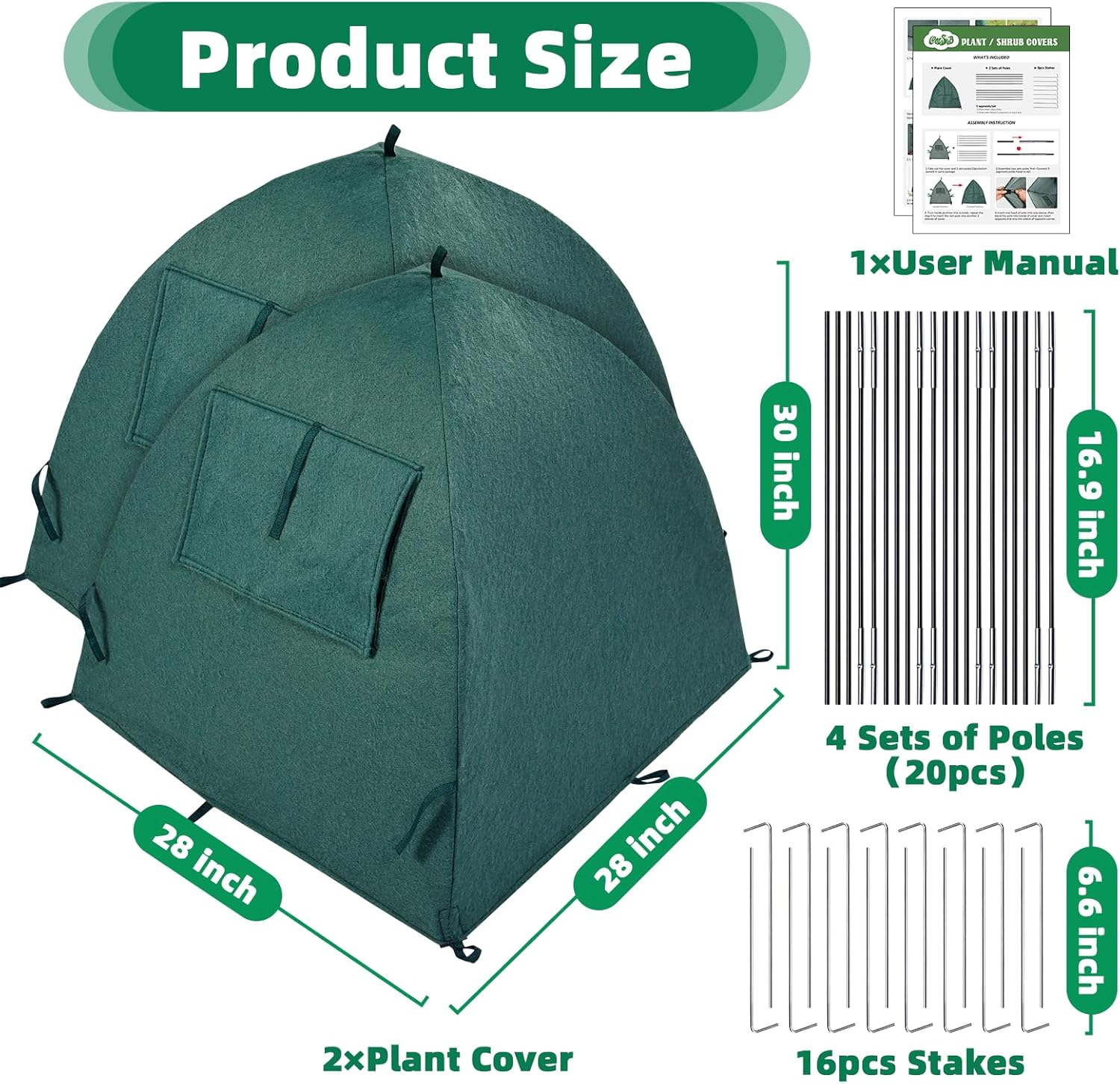 - 【Easy to Use】The frost plant covers has a simple design with connecting rods and ground spikes, and comes with installation instructions to make it easy for you to install and operate the plant cover.