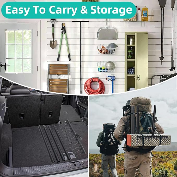 - 【Easy Install & Store】The metal lawn leveling rake is easy to assemble. The handle consists of multi-section poles that can be rotated and tightened to achieve the desired length. Additionally, its detachable design allows for convenient storage, saving valuable space in your gardening shed or garage.