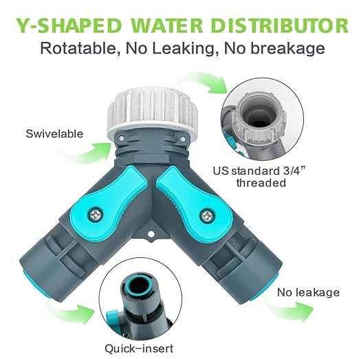 - 【Leak free Water Divider】The Y-type water separator with American standard 3/4 "thread size is easy to install and leak-proof. Not only does it separate the two lines, but it can also be controlled by a separate switch, allowing you to water your plants from multiple lines