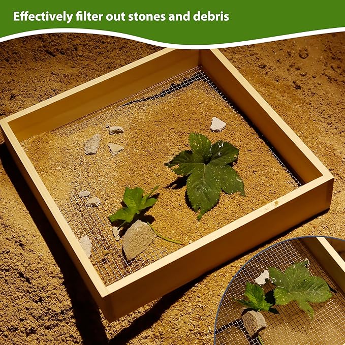 - Ideal for Multiple Uses: This wood dirt sifter is perfect for various tasks including seed separation, debris cleaning, and rock tumbling. Its compact size and versatile mesh types make it an essential soil sifter for rocks, gardening, and compost sifting soil.