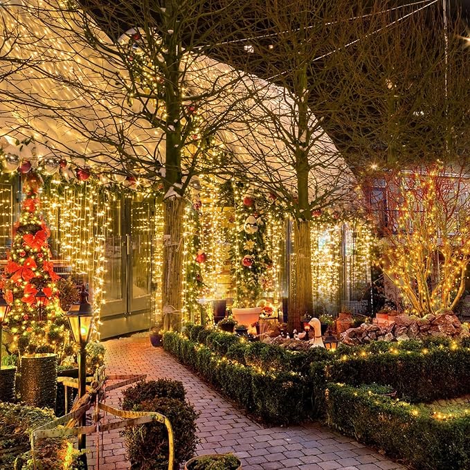- 【Versatile Outdoor/Indoor String Lights】Solar string lights with a total of 6 strings allow you to be more flexible with your imagination and can be easily installed wherever you need to decorate. The solar lights can be molded into various shapes for gardens, patios, trees, porches, roofs, fences, bistros, restaurants, hotels, commercial buildings. It can also be used for weddings, parties, Christmas and New Year parties to create a warm and joyful holiday atmosphere.