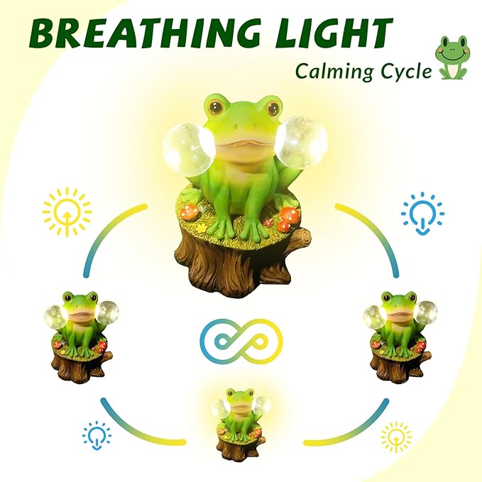 - Versatile and Easy to Use: The frog decor is designed for versatility, Can be placed on a variety of surfaces, including garden, patio, or flower bed. It operates with a simple on/off switch, making it easy for anyone to use. The size and lightweight design also make it a great choice for those who want to add a unique touch to spaces