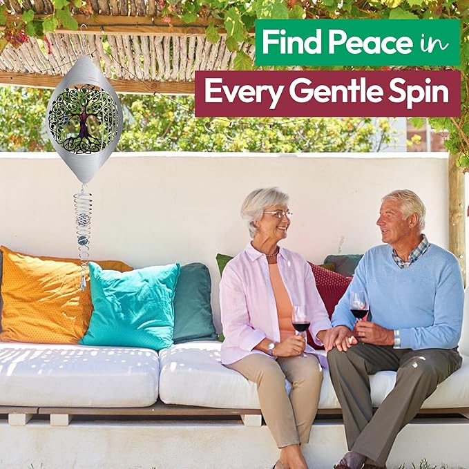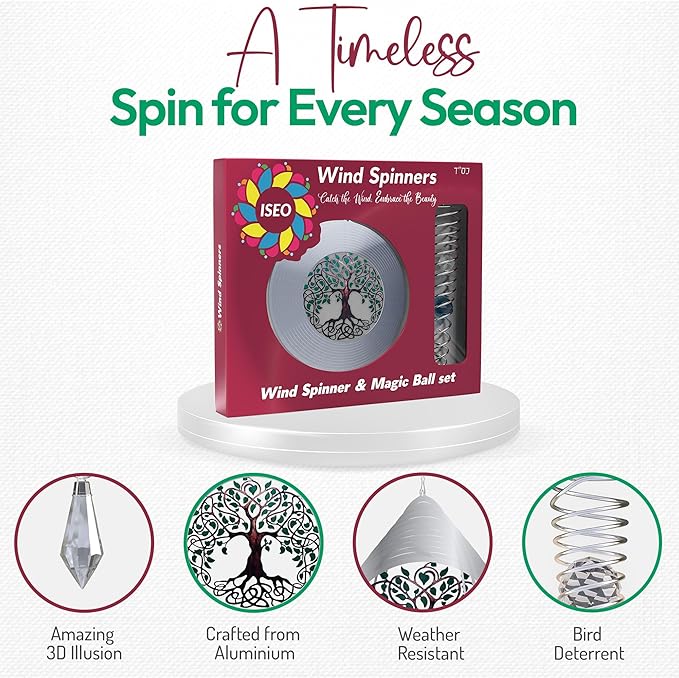 ISEO Tree of Life Wind Spinner Outdoor and Gazing Ball Set, Metal Yard and Garden Decoration, Weather-Resistant Wind Spinners for Outdoor, 6.5" Cool Garden Décor, Perfect Wind Spinner Gift