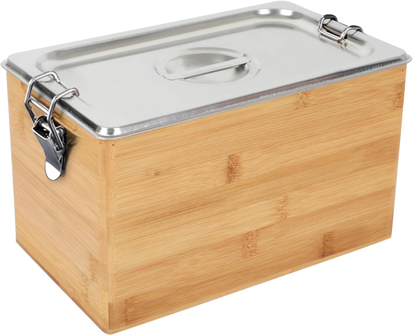 - 【Recessed Design】This kitchen compost bin is easy to clean, when you finish each use, you can directly rinse the built-in stainless steel liner or put it into the dishwasher to clean, and then dry it and then put it into the bamboo wooden box, easy to use