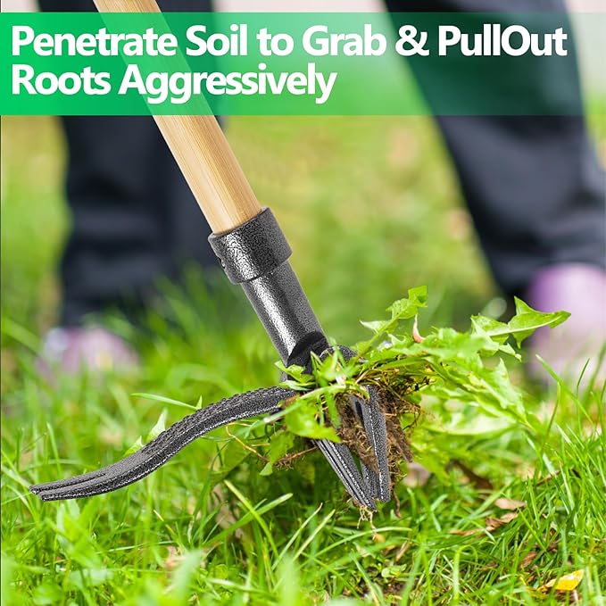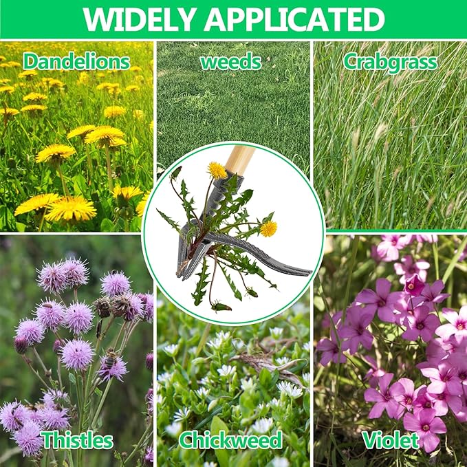 - 【Brand New Upgrade, Buy with Confidence】: This scientifically designed weed remover tool effectively eradicates weeds, including dandelions, crabgrass, thistle, quack grass, plantain, clover, burdock, and other invasive weeds. It contains no harmful chemicals, making it safe for children, pets, and the environment. If you have any questions, please feel free to contact us, and we will provide you with a satisfactory solution within 24 hours. Lifetime warranty!