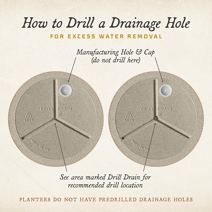- Plant It All - The Santorini Bowl large outdoor planters provide ample space for diverse greenery, vibrant flowers, and abundant succulents to flourish. Dimensions: 21"x21"x7.5" (15 qt) & 26"x26"x9" (36 qt). Includes drillable drainage holes.