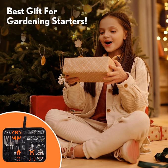 Bonsai Tools Kit 20 Pcs Garden Tools Set for Beginner, Includes Bonsai Wire Kit, Plant Mat, Pruning Shears, Bonsai Scissors, Succulent Tools in Leather Storage Bag, Gardening Gift for Women Men