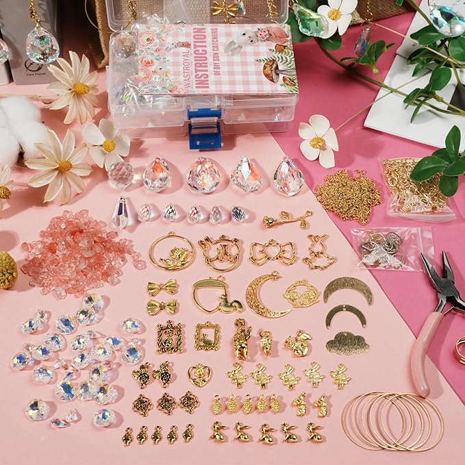 WASTROYAL 420 Pcs DIY Suncatcher Making Supplies Kits for Adults Hanging Prism Sun Catcher with Crystals Rainbow Maker for Indoor Window Home Wedding Garden Christmas Decor (Rabbit)