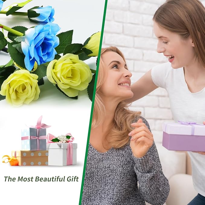 Solar Garden Lights - Realistic 20 Rose Waterproof Solar Flowers for Outside Patio Yard Pathway & Christmas Decorations, Blue & Yellow