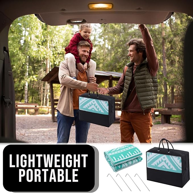 - LIGHTWEIGHT & PORTABLE: The lightweight foldable construction makes this patio rug ultra-portable; take them anywhere from campouts to picnics without adding extra bulk; with a matching carry bag for easy transport and storage