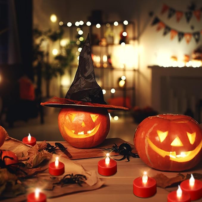 Tea Light Candles with Remote Control,50pack Flickering Flameless LED Candle,Long Lasting 400+Hours,Battery Operated with Timer for Home Decoration Seasonal &Festival Celebration Red