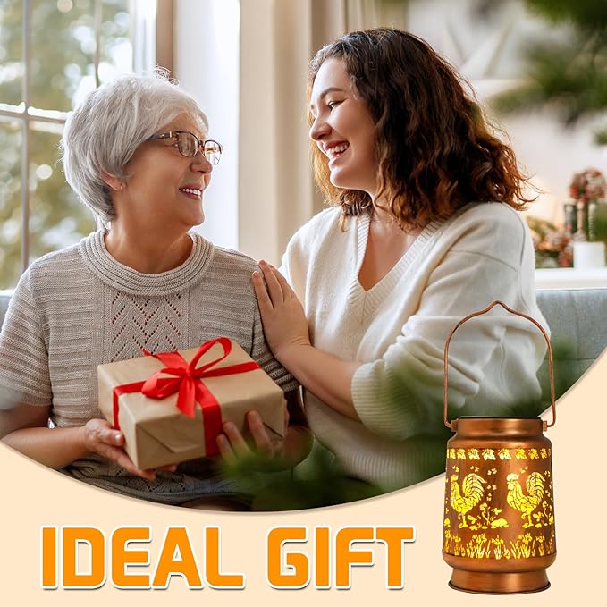 - 【Charming Vintage Style】The Rooster lanterns with its elegant antique bronze finish and delicate cut-out patterns, this solar lantern casts a soft, inviting glow after sunset. Ideal for adding a touch of whimsy to your garden, it complements various outdoor settings while creating a warm and welcoming atmosphere.
