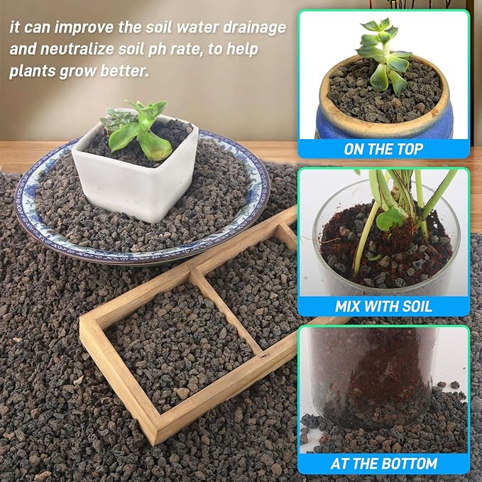 - 【Lava Soil Amendment】The black lava rocks, featuring a loose and porous structure, effectively enhance drainage and guard against root rot, while simultaneously fostering healthier plant growth. This makes them the perfect choice for succulents and acid-loving plants.