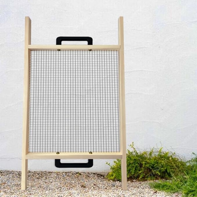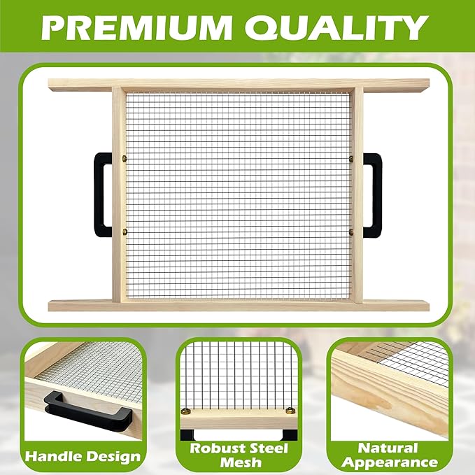 - 【Built to Last – Sturdy and Durable】Crafted with a solid wooden frame and reinforced steel mesh, this sifter is built for heavy-duty performance. Whether you're tackling tough soil or heavy compost, it's durable enough to withstand season after season of consistent use.