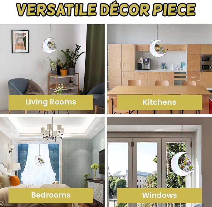 Sensory4U Mushroom Moon Stained Glass Suncatcher - Earth Tone Modern Window Hanging Wall Art - Home Decor or Garden Suncatcher for Natural Light Reflection