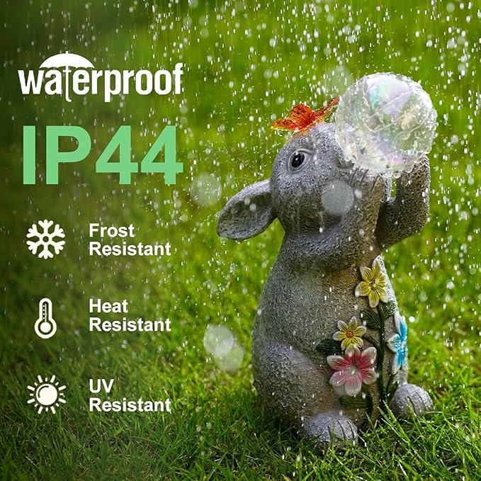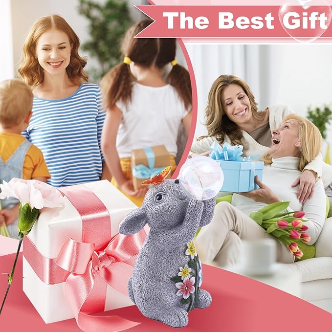- 【Solar Powered】: The funny rabbit statue with solar bubble light that charges during the day and automatically turns on at night, creating a beautiful illuminated effect in your garden or yard to enhances the ambiance of your outdoor space