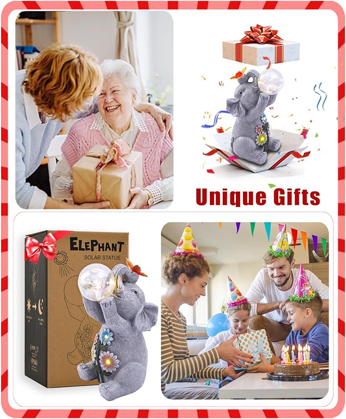 Nacome Solar Elephant Outdoor Statues for Garden: Outside Decor with Blow Bubbles Ball Lights Clearance for Yard Art Lawn Ornaments Porch Patio Balcony Home - Birthday Gifts for Grandma Mom Women
