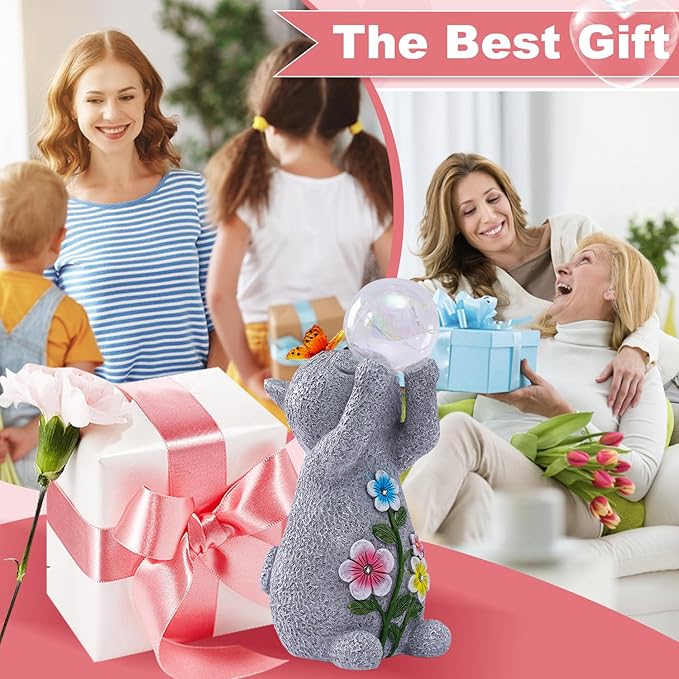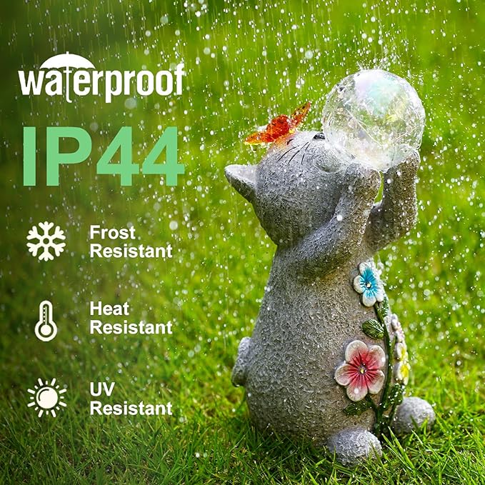 - 【Solar Powered】: The cat statue with solar bubble light that charges during the day and automatically turns on at night, creating a beautiful illuminated effect in your garden or yard to enhances the ambiance of your outdoor space
