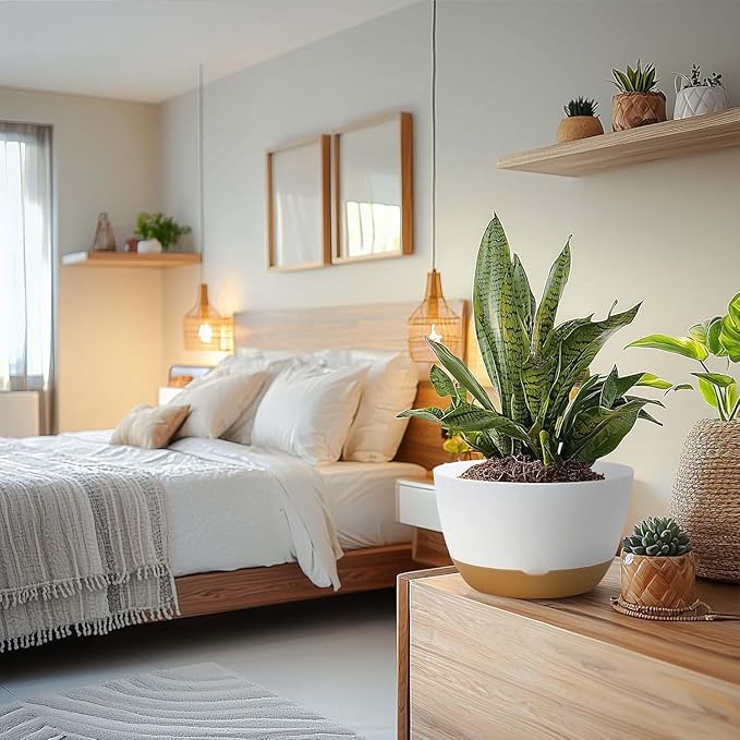 - 【Morden Minimalist Appearance】Koalaime large self watering pots have a matte textured surface with a flat round unique shape, looks very stylish. Ideal for landscaping your garden, living room or office, etc. Koalaime Planter is the perfect gift for plant lovers.