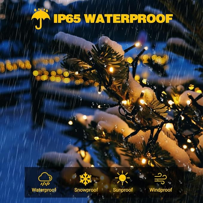 - Waterproof IP65 and Widely Use: Designed with IP65 waterproof solar panels and wires, these solar Christmas lights outdoor are durable and suitable for both indoor and outdoor decor. Perfect for a variety of occasions, these outdoor solar string lights are an excellent choice for decorating during Christmas, weddings, parties, or enhancing spaces like the patio, garden, yard, fence, porch, roof, or even your Xmas tree