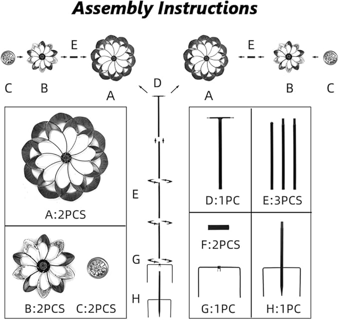 - Easy to Install: This metal wind spinners outdoor consist of two parts, the blades and the pole, with simple accessories that do not require tools and can be installed in minutes. Just push into the soil, grass, or garden for instant decoration