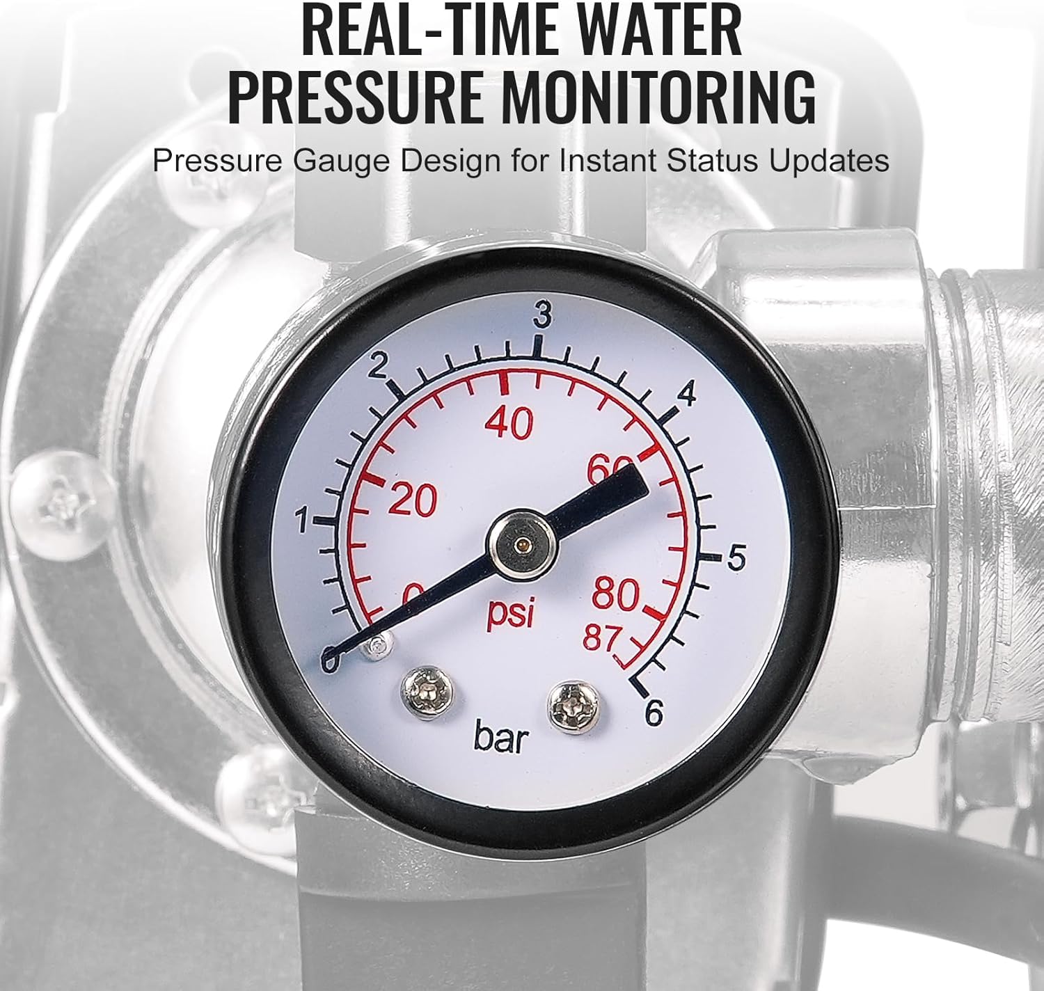 - 20/40 PSI Pressure Switch: Enjoy hassle-free operation with our advanced 20/40 PSI pressure switch. This feature automatically starts the pump at 20 PSI and shuts it off at 40 PSI, minimizing the frequency of pump cycles. This intelligent control not only optimizes performance but also significantly extends the lifespan of your shallow well pump pump by reducing wear and tear.